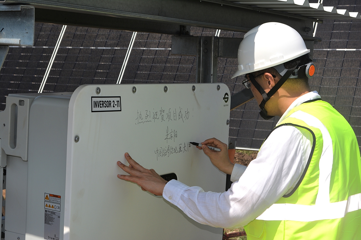大使在巴拉諾阿II期項目安裝最后一臺逆變器上簽名